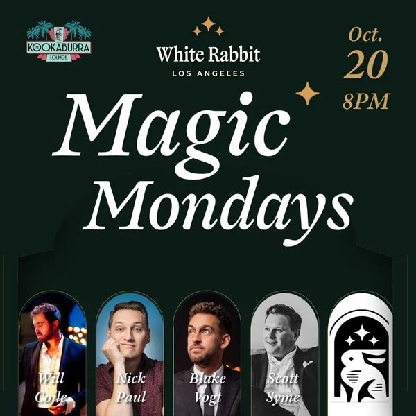 White Rabbit LA Presents Magic Mondays Come with us to the heart of Hollywood to experience an opulent evening of magic and mystery. Hidden inside a beautiful art deco atmosphere, the best kept secret in town, are elite magical acts from around the country. Prepare to be amazed as many surprises and delights await you. This is where the best come to play and every guest will depart with a story worth sharing!